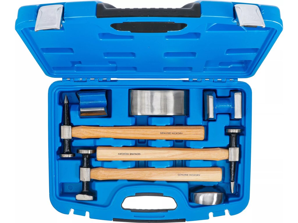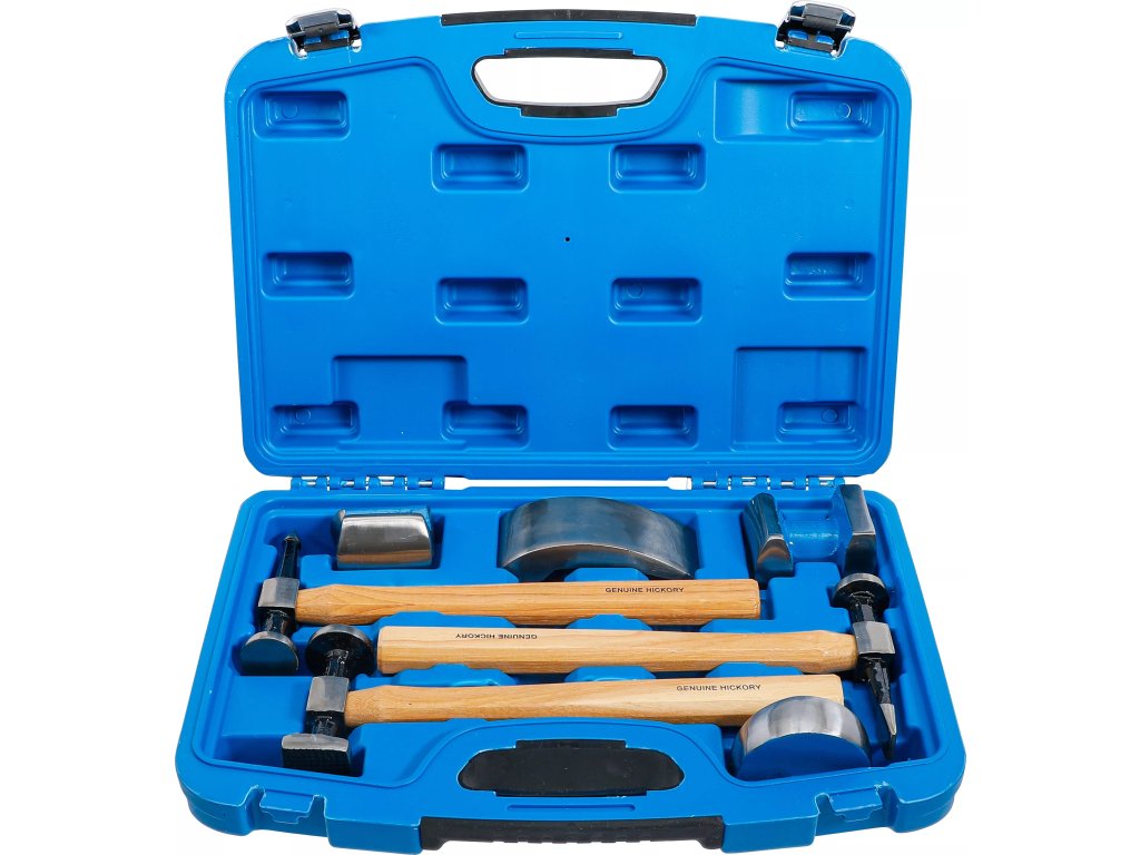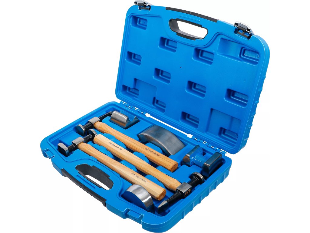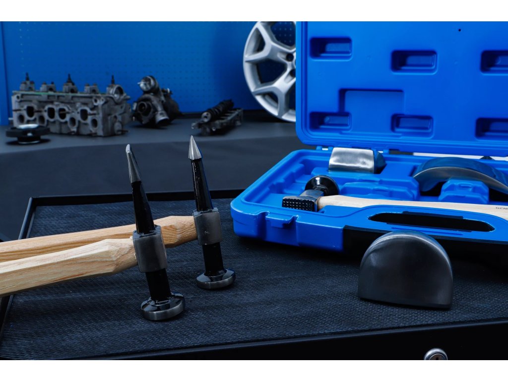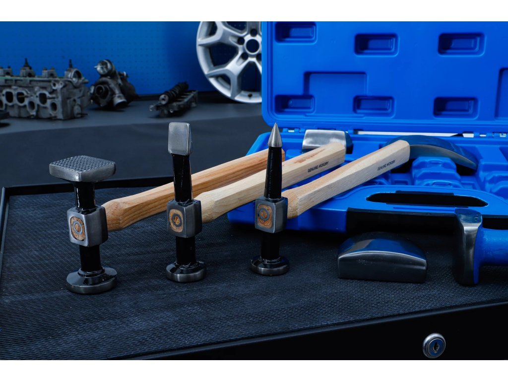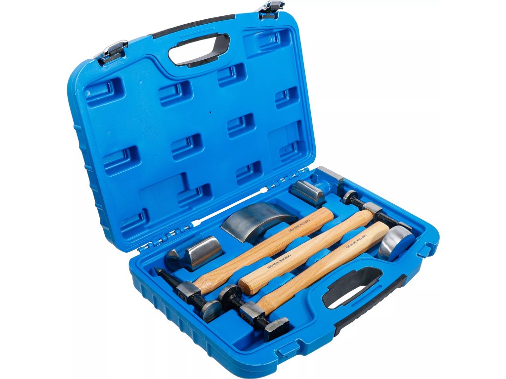 7-dielna sada: Obsahuje 3 karosárske kladivá a 4 kovadliny, ktoré pokrývajú široké spektrum karosárskych prác.