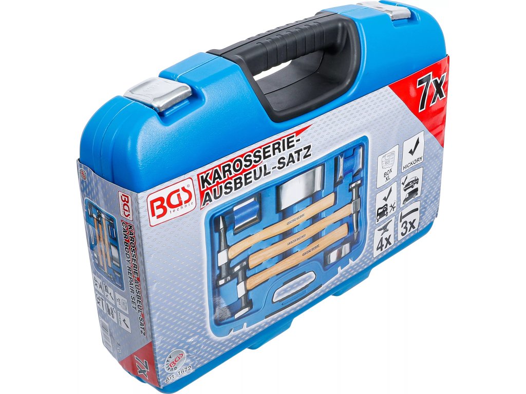BGS technic 1672 je 7-dielna karosárska opravárenská sada navrhnutá pre profesionálne opravy karosérií vozidiel. Sada obsahuje tri karosárske kladivá a štyri kovadliny (tzv. panelové pätky), ktoré umožňujú efektívne vyrovnávanie preliačin, tvarovanie plechov a opravy karosérie bez poškodenia povrchu.