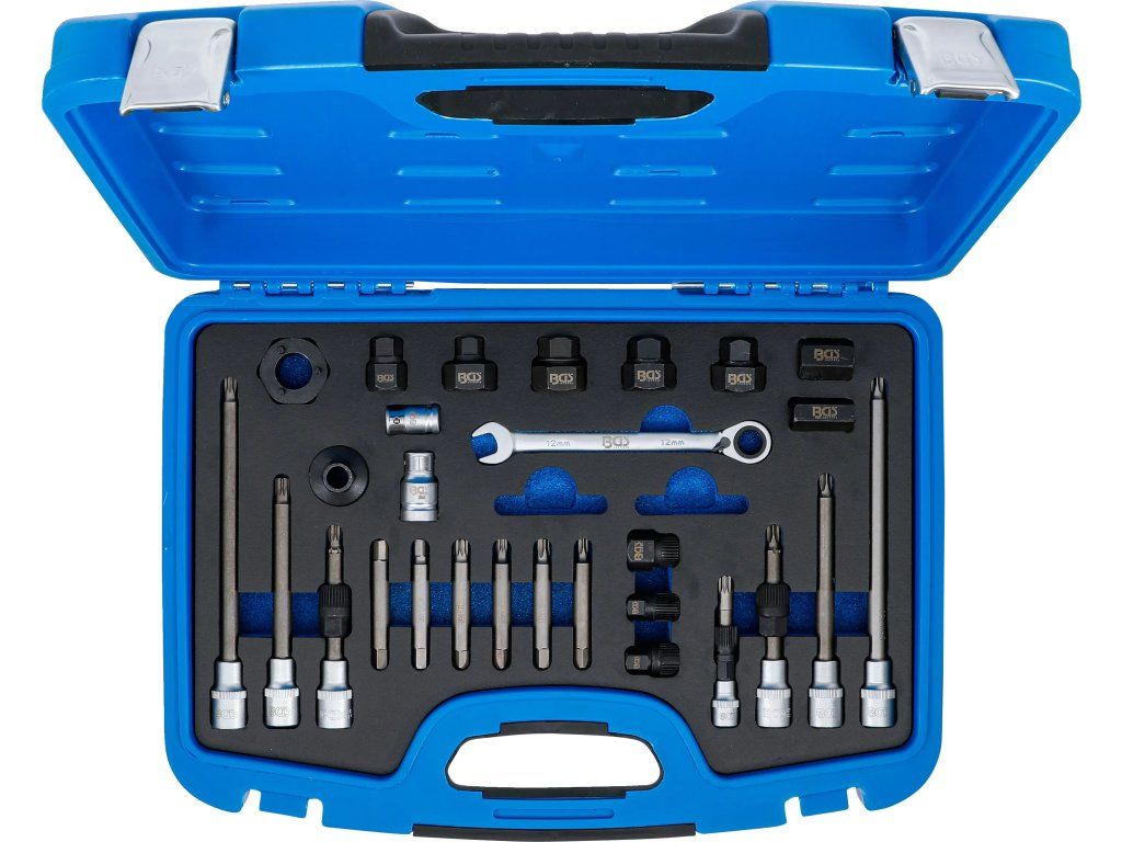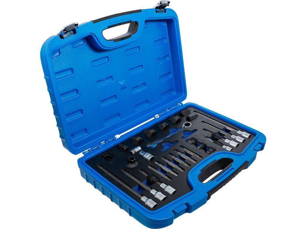 Profesionálna sada náradia na alternátory 30 ks je určená na demontáž remeníc alternátora. Obsahuje špeciálne hlavice, kľúče a bitové nadstavce pre servis alternátorov rôznych typov.