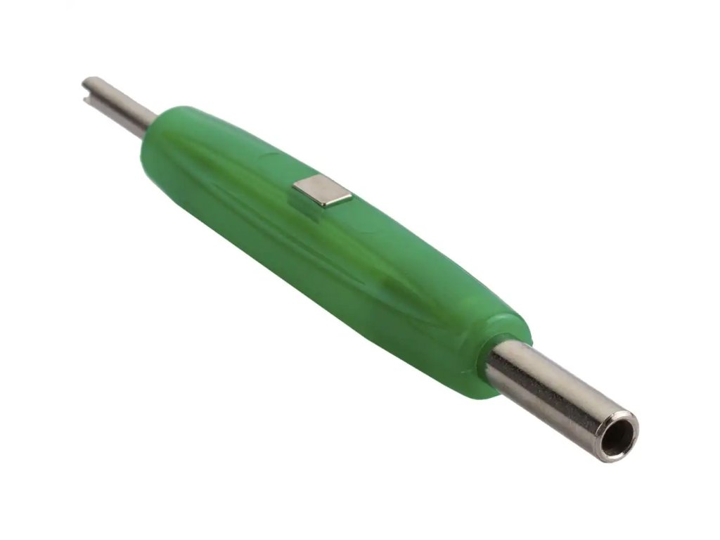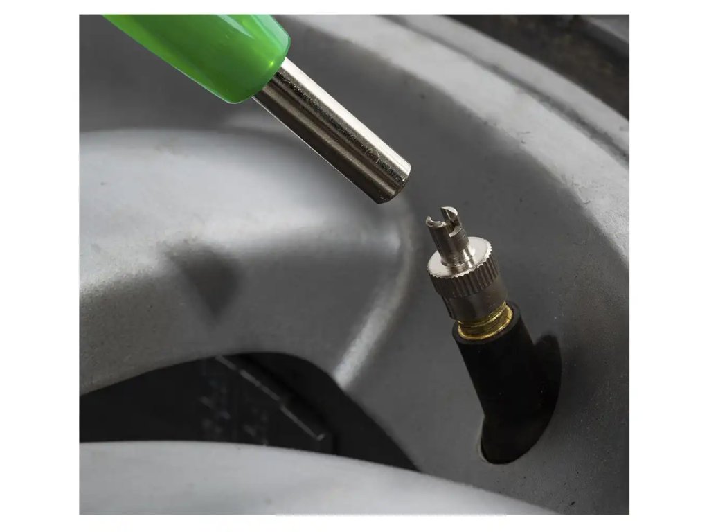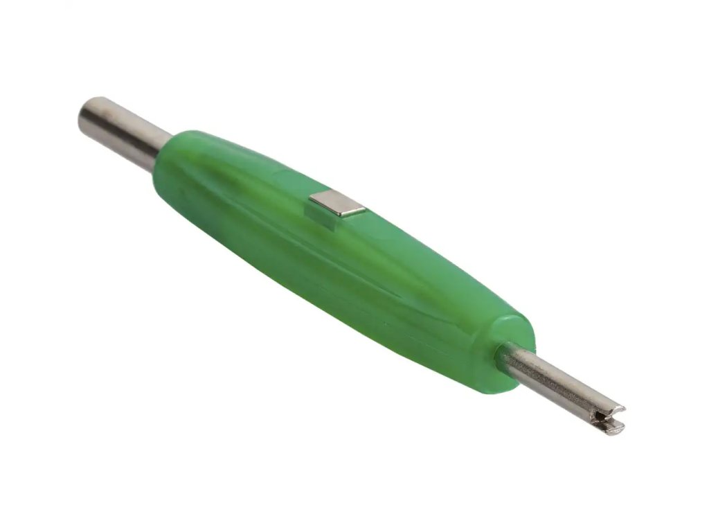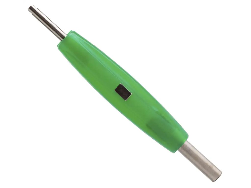 Skrutkovač pre vložky akéhokoľvek štandardného automobilového ventilu. Na druhej strane skrutkovača je hrot, ktorý pomáha pri odskrutkovaní uzáverov pomocou kľúča.