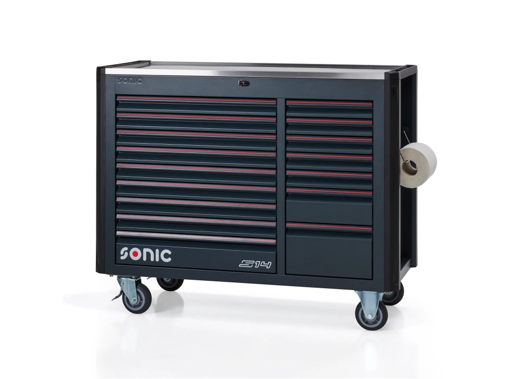SONIC NEXT S14 je špičkový dielenský vozík s náradím určený pre profesionálnych mechanikov, ktorí od vybavenia dielne očakávajú maximum. Tento model patrí do vrcholnej rady SONIC NEXT a je navrhnutý pre pracoviská, kde sa denne pracuje vo vysokom tempe, s veľkým množstvom náradia a s dôrazom na presnú organizáciu, rýchly prístup k vybaveniu a dlhodobú spoľahlivosť.