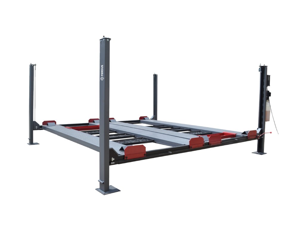Štvorstĺpový parkovací zdvihák 4SF-4200D od značky Ferdus je navrhnutý na efektívne využitie priestoru a pohodlnú manipuláciu s vozidlami. Široký rozchod medzi stĺpmi (4 400 mm) a dlhé plošiny poskytujú stabilnú oporu pre osobné vozidlá aj SUV.