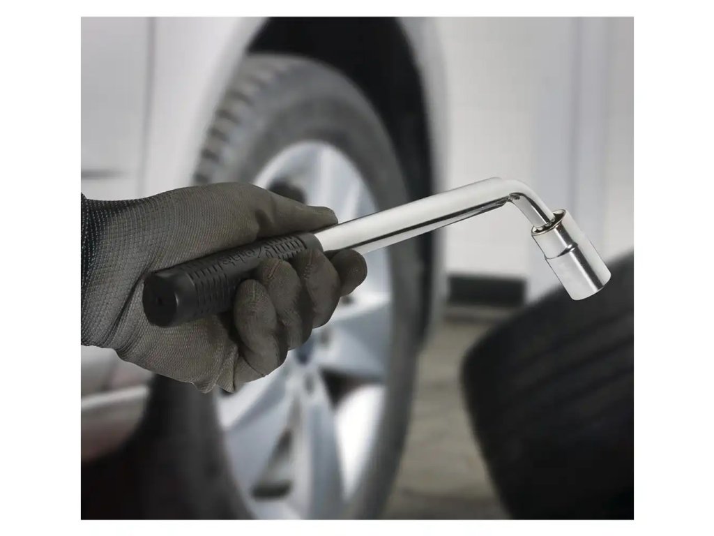 Rukoväť tohto kľúča je zakončená gumovou rukoväťou. Tento teleskopický kľúč perfektne padne do ruky a pri odskrutkovaní sa nešmýka. Na kľúči je špeciálna guľôčka, ktorá zaisťuje nadstavce - takže počas práce nekĺžu.