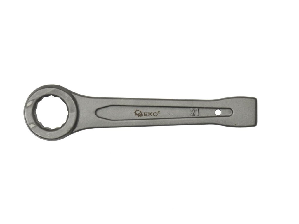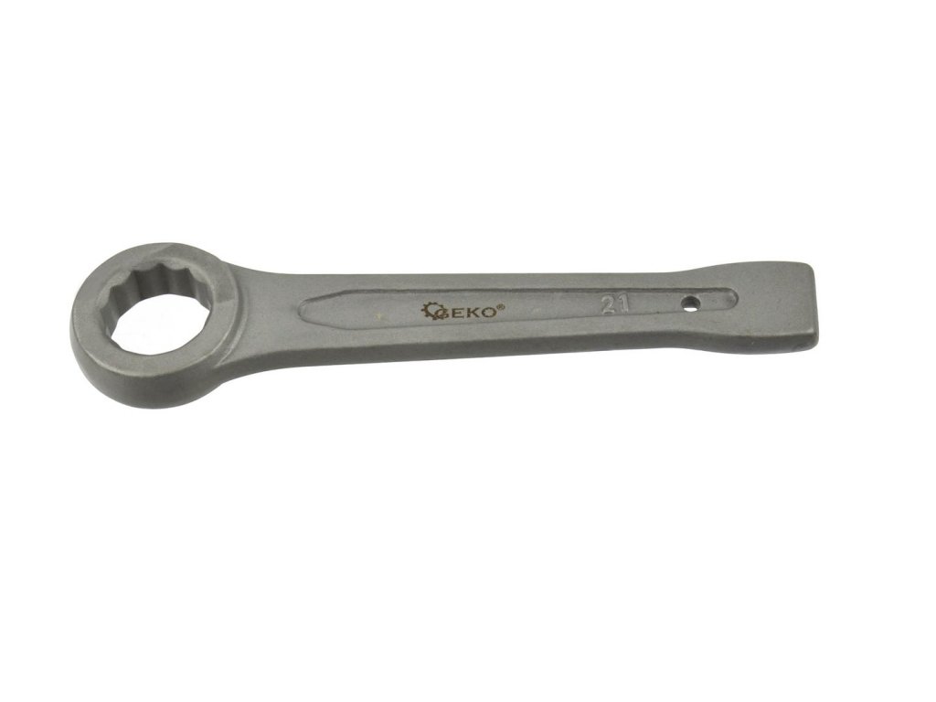 Masívny úderový očkový kľúč 21 mm z chróm-vanádiovej ocele, určený na povoľovanie a doťahovanie extrémne zatiahnutých skrutiek pomocou kladiva. Vhodný pre ťažké dielenské a priemyselné použitie.