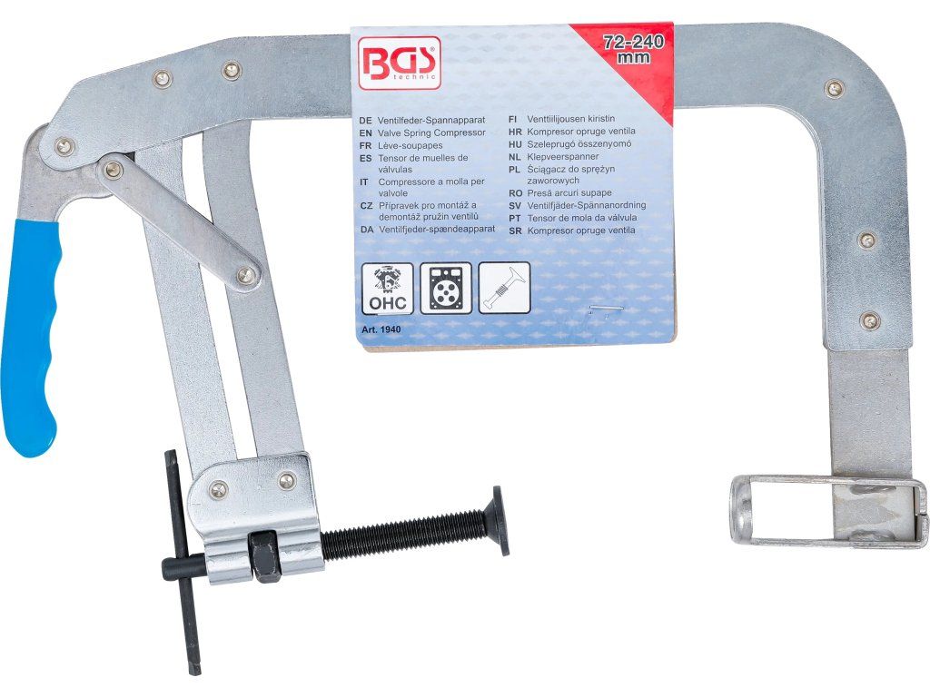 Profesionálny sťahovák ventilových pružín pre OHC motory s rozsahom 72–240 mm, vhodný aj špeciálne pre vozidlá Toyota.