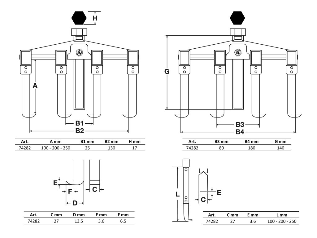 Univerzálna 2-ramenná sada sťahovákov určená na vnútorné aj vonkajšie sťahovanie ložísk, ozubených kolies, remeníc a puzdier. Vďaka štíhlym hákom a rôznym dĺžkam ramien je ideálna aj do stiesnených priestorov.