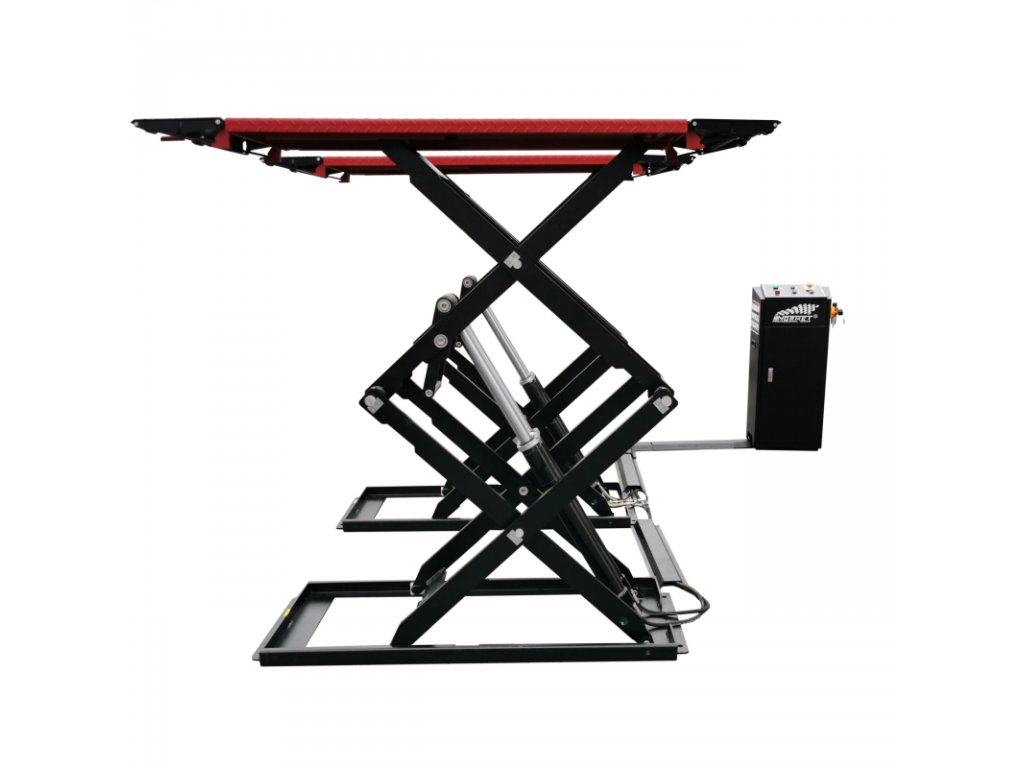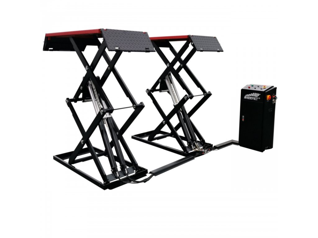 Silný a stabilný nožnicový zdvihák s nosnosťou 3 500 kg pre rýchly servis kolies a podvozku. Montáž na podlahu, elektromagnetické bezpečnostné poistky, komfortná pracovná výška.