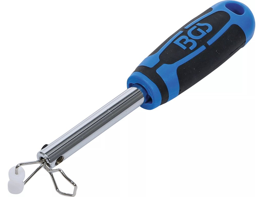 Zavádzač tesniacich lemov BGS technic 8002-1 je profesionálny nástroj určený na montáž tesniacich profilov na nelepené autosklá. Vďaka výmennému kovovému strmeňu umožňuje presné a rovnomerné zatláčanie klínku do gumového tesnenia, čo zaručuje kvalitné a pevné osadenie skla.