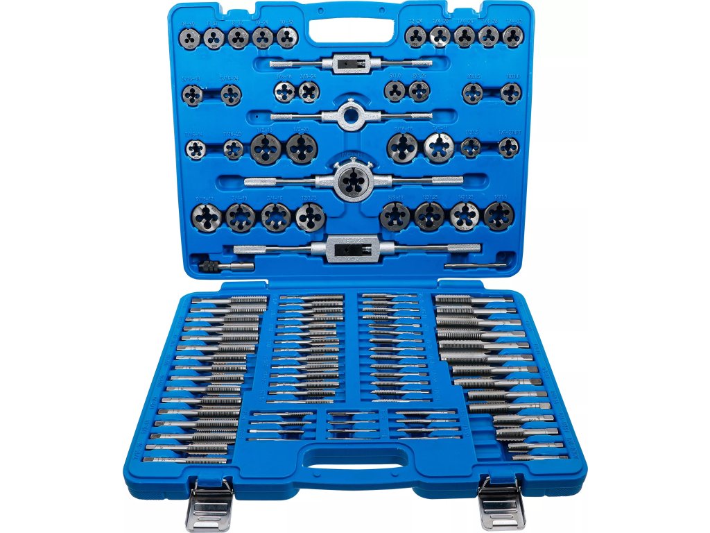Táto rozsiahla závitníkovo-očková sada je navrhnutá pre odborníkov, ktorí pracujú s jemnými závitmi a neštandardnými rozmermi. Obsahuje kompletné zostavy závitníkov aj očiek pre metrické aj palcové normy, vrátane potrubných závitov NPT.
