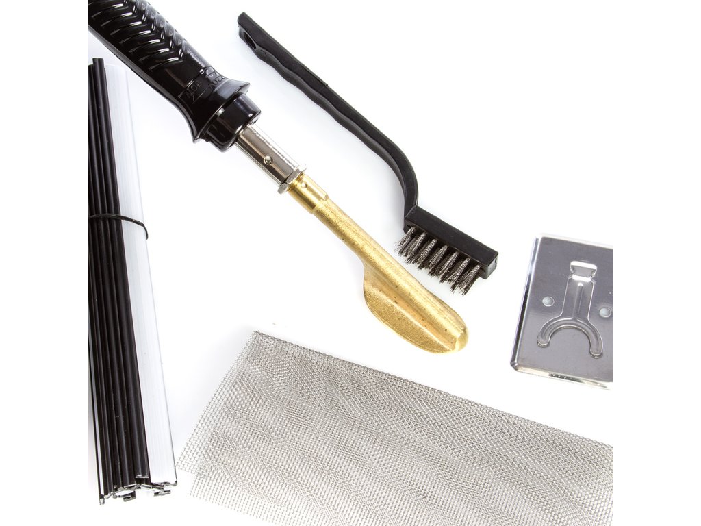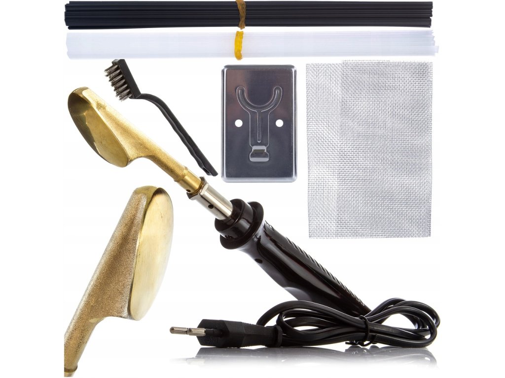 Záplata plastu výstužnou sieťovinou: V prípade poškodených prvkov, ako sú praskliny alebo diery v plastových dieloch, umožňuje spájkovačka spolu s výstužnou sieťkou efektívne a trvanlivé opravy. Spoje sú pevné a odolné voči ďalšiemu poškodeniu.